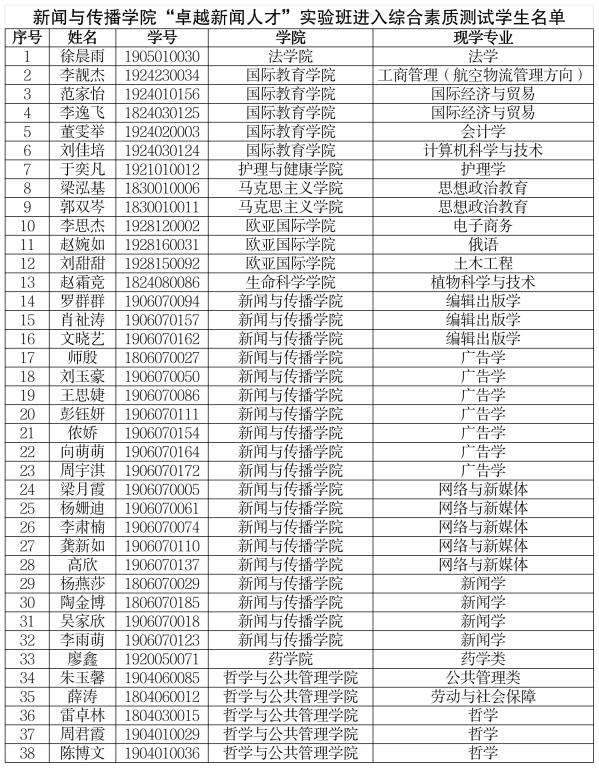 公司“卓越新闻人才”实验班进入综合素质测试员工名单